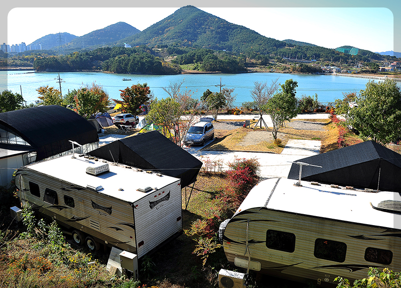 통영오토캠핑장 내에는 총 10개의 카라반과 24개의 캠핑 사이트가 있다.